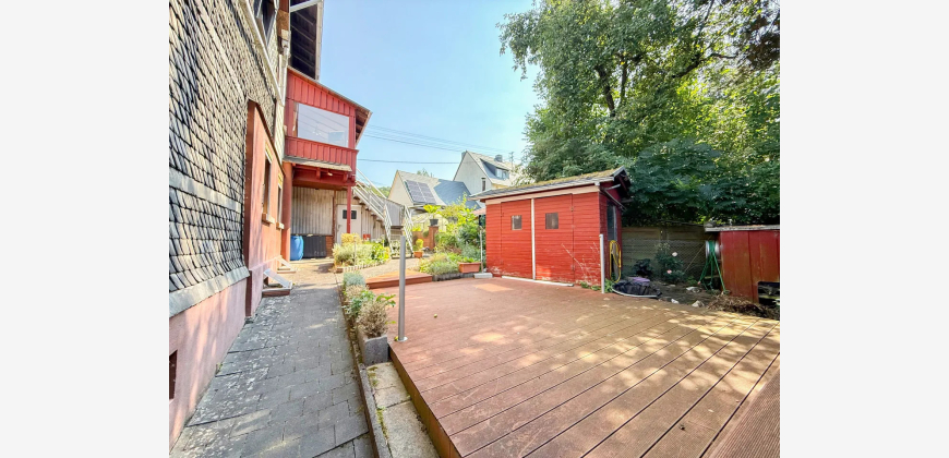 Das ehem. Bauernhaus wurde um ca. 1920 auf einem rd. 425 m² großen Grundstück errichtet und später um weiteren Wohnraum ergänzt. Heute bietet es zwei potenzielle Wohneinheiten, die aktuell miteinander verbunden sind, aber mit entsprechenden Umbaumaßnahmen separat nutzbar wären - Ideal für einen Mehgenerationenhaushalt oder zum Wohnen und/oder Vermieten. Der rechte, ursprüngliche Hausteil befindet sich in renovierungsbedürftigem Zustand und stellt einen Wohn-/Essbereich, eine Küche, ein Bad sowie ein Schlafzimmer zur Verfügung. Der linke Teil ist gepflegt und sofort beziehbar. Diese Einheit besitzt 2 Schlafzimmer, ein Duschbad, eine Ankleide, einen geräumigen Wohn-/Essbereich mit angrenzendem Wintergarten, eine Küche samt EBK sowie zwei Abstellräume. Das pflegeleichte Grundstück bietet eine große Terrasse im hinteren Bereich sowie ein Gartenhaus. Zwei separate Stromzähler sind vorhanden. Der linke Teil ist über das gemeinsame Treppenhaus im Obergeschoss oder über den Wintergarten zugänglich. Das Haus ist teilunterkellert - im Ursprungsteil befindet sich ein Bruchsteinkeller mit drei Nutzräumen. Als Parkmöglichkeit stehen zwei Garagen und 1-2 Stellplätze vor dem Objekt bereit.
