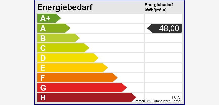 Endenergiebedarf beträgt 48.00 kwh/(m²*a).