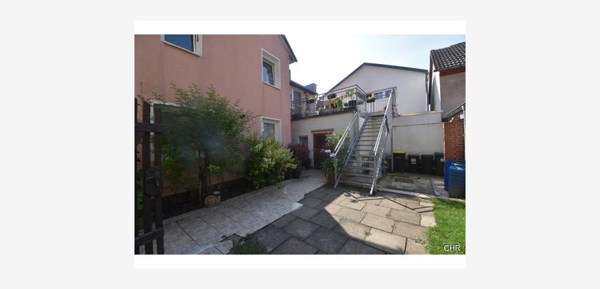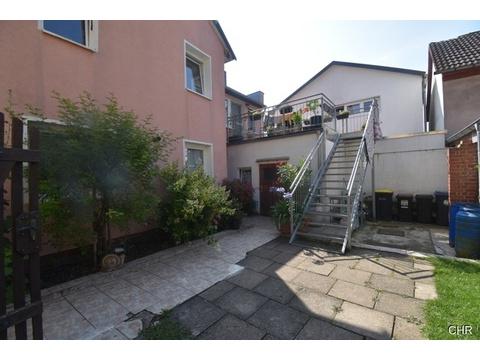 Die Wohnung im Obergeschoss ist ebenfalls über den kleinen gepflegten Garten, hier über eine Aussenstahltreppe, zu Erreichen.