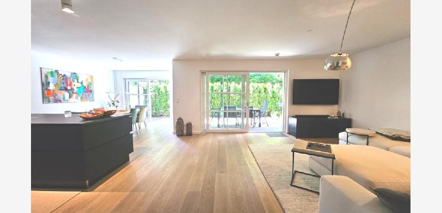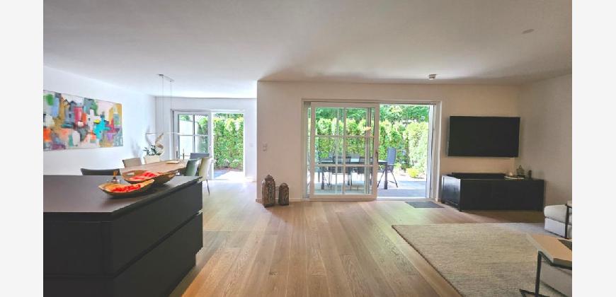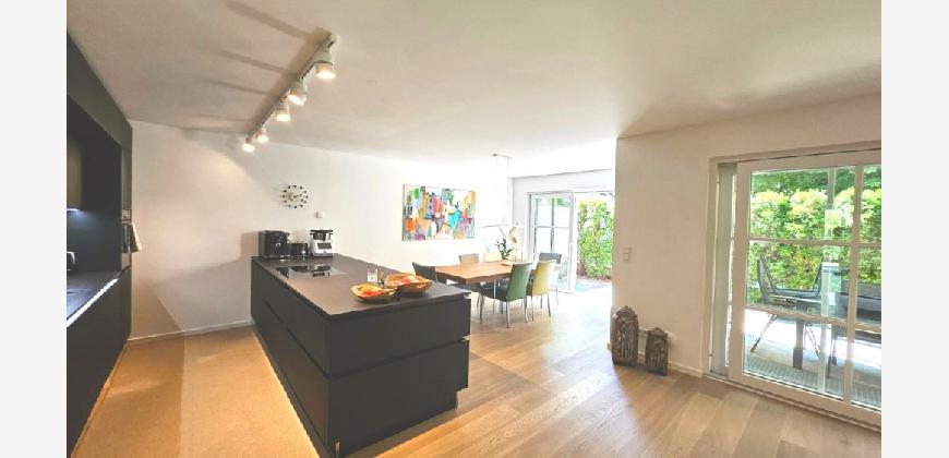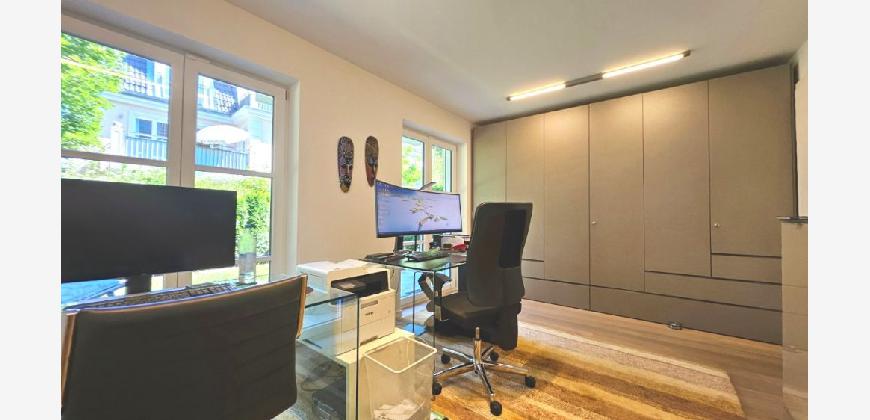 Kurz: Hochwertige Maisonette (EG + UG) mit zwei Terrassen, Sauna und Tiefgaragenstellplatz mit Wallbox — ein Residence‑Charakter in sonnenverwöhnter, ruhiger Lage im Süden Münchens.