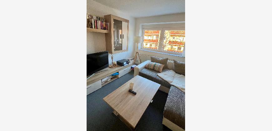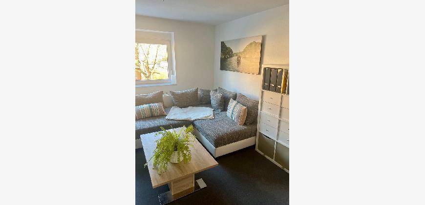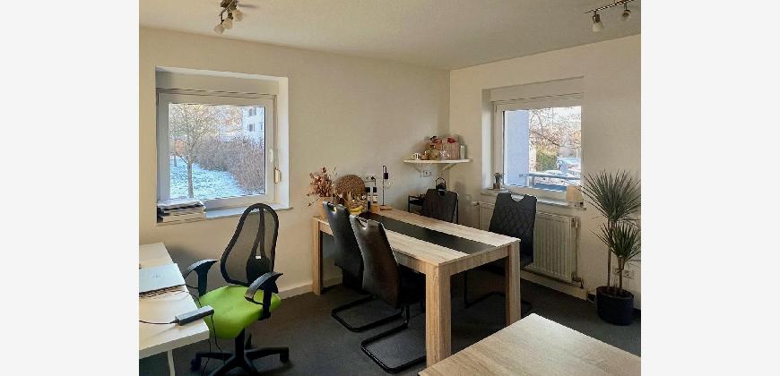 •🛋️ Wohnzimmer mit gemütlicher Couch, moderner Wohnwand und Schreibtisch zum Arbeiten oder Lernen