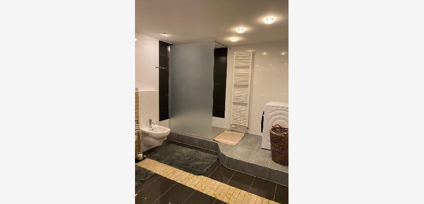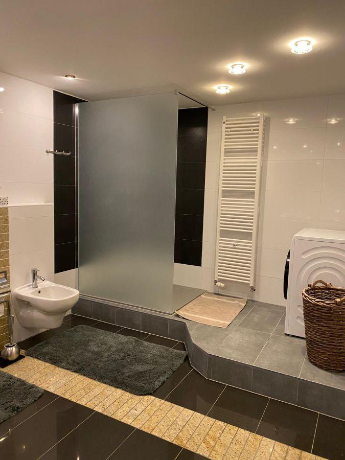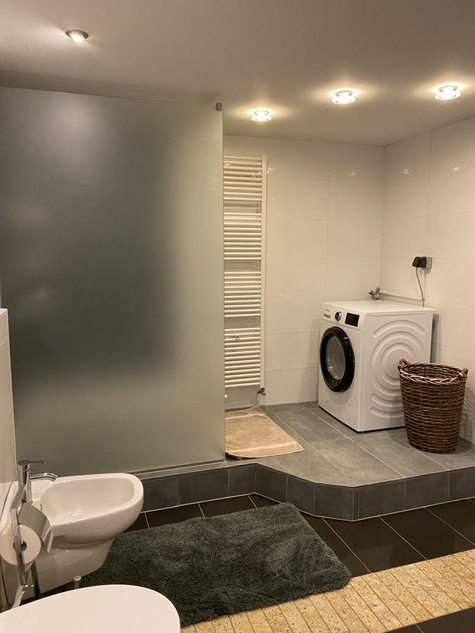 Das Badezimmer beinhaltet Dusche/WC/Bidet/Doppelwaschbecken.