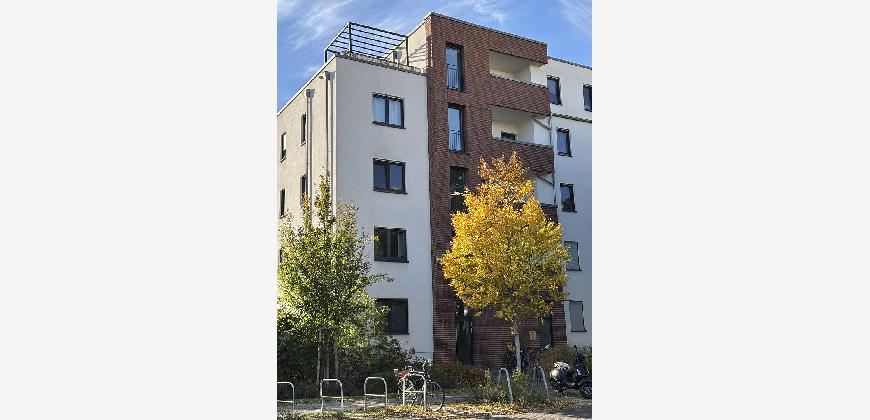 Wohnanlage mit weitläufigen Grünflächen ausgebaut wurde.