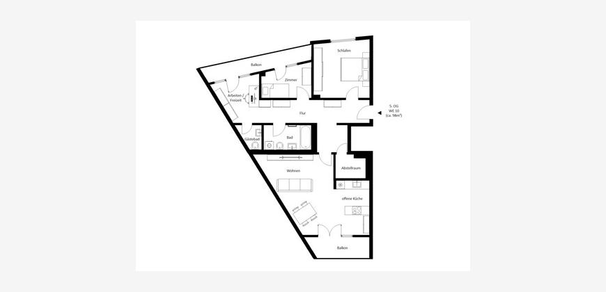 Des Weiteren bietet der großzügige Flur eine optimale Möglichkeit, diesen Bereich als Arbeitsplatz zu nutzen - sei es für das Homeoffice oder als kreativen Arbeitsplatz. Der anschließende Balkon lädt dazu ein, frische Luft zu genießen und entspannte Stunde zu verbringen.