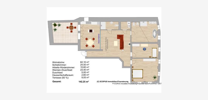 Die außergewöhnliche 3-Zimmer-Wohnung ist ideal für alle, die eine individuelle Raumaufteilung schätzen. Das Zusammenspiel eines großzügigen Grundrisses, einer hochwertige Ausstattung und liebevoller Architektur verleihen der Wohnung einen ganz besonderen und einzigartigen Charme.