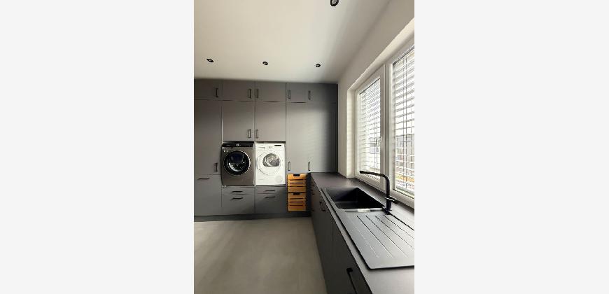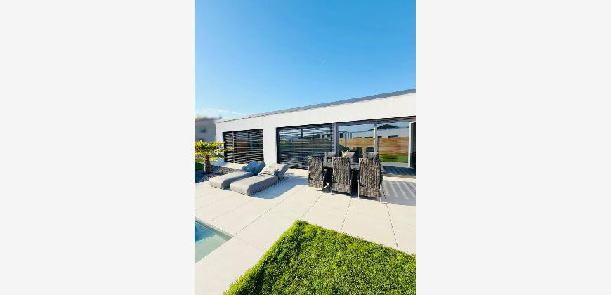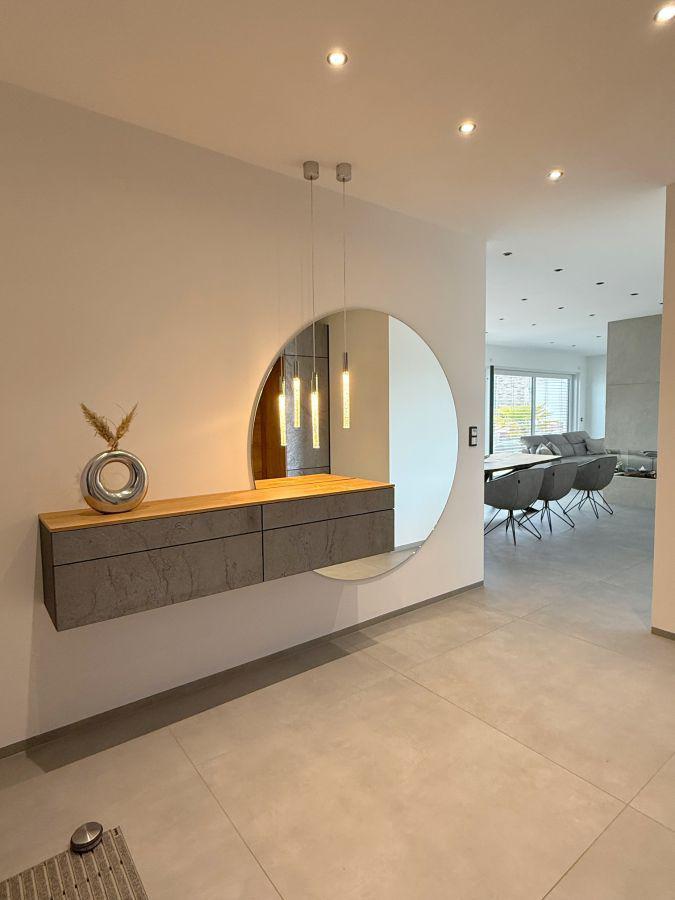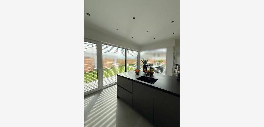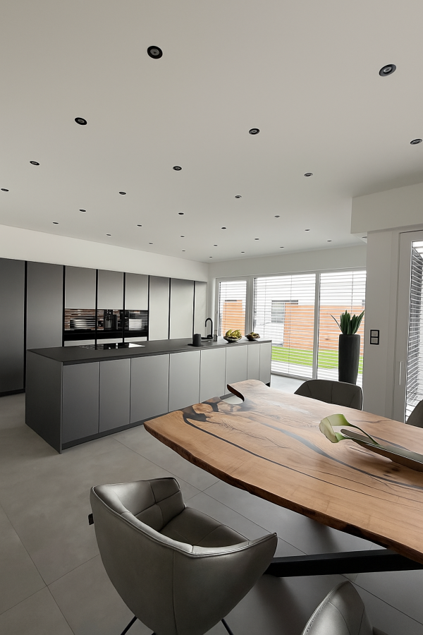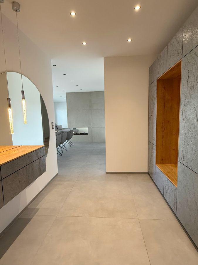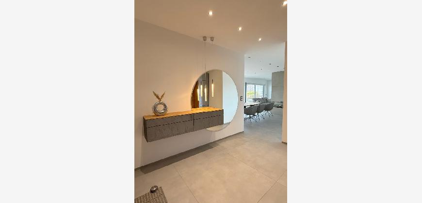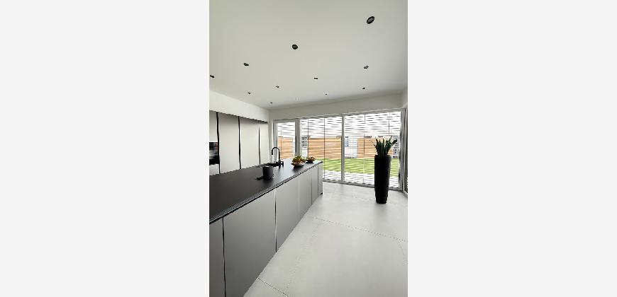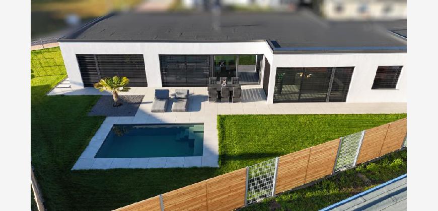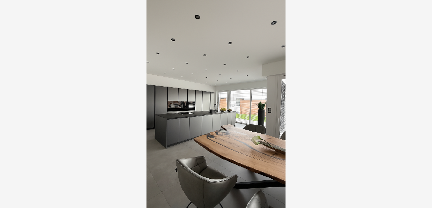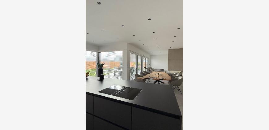 Dieser moderne Bungalow wurde im Jahr 2023 in einem ruhigen Neubaugebiet in Winsen (Aller) errichtet. Das Haus ist ideal für die moderne Familie, die mit neusten technischen Standards leben möchte. Der Bungalow überzeugt durch eine wohl durchdachte Raumaufteilung und besticht sowohl durch seine große Wohnfläche als auch auf die luxuriöse Ausstattung, bei der keine Wünsche offen bleiben. Zudem ist der Bungalow barrierefrei gestaltet, was ein komfortables Wohnen ermöglicht. Nach dem Betreten des Hauses durch den einladenden Flurbereich, welcher über Hochwertige maßangefertigte Möbel verfügt, haben Sie direkten Zugang zum Gäste-WC. Der offene Wohn und Essbereich mit offener Küche inkl. einer 4 m Kochinsel ist das Herzstück des Hauses. Das absolute Highlight ist der Kamin, der im Wohnbereich als stillvoller Raumteiler fungiert. Die Wand, die den Kamin umgibt, ist in einer modernen Betonoptik gestaltet, was dem Raum eine elegante und gleichzeitig offene Atmosphäre verleiht. In der Küche befindet sich ein geschickt versteckter Durchgang. Über diesen Durchgang gelangt man bequem in den Hauswirtsschaftsraum, was den Alltag deutlich erleichtert. Vom Hauswirtschaftsraum aus führt eine Nebeneingangstür direkt in die Doppelgarage. Diese praktische Verbindung ermöglicht es, nach dem Einkaufen das Auto direkt in die Garage zu fahren und den Einkauf mühelos vom Abstellraum in die Küche zu bringen. Im Wohn-, Ess- und Küchenbereich befindet sich eine sehr großzügige Glasfont , die dem Objekt zusätzlichen Charme verleiht. Durch das große Schiebeelement gelangen Sie auf die Terrasse, wo Sie entspannen und den wunderschönen, großen, beheizten Pool genießen können. Der gepflegte Garten verfügt über eine Bewässerungsanlage und einen Mähroboter. Die Schlafbereiche sind durch einen großen Durchgang vom offenen Wohnbereich getrennt, was für zusätzliche Privatsphäre sorgt. Neben drei gleich großen Kinder- oder Arbeitszimmern gibt es ein eigenes Kinderbad mit einer großen Regendusche und Waschtisch aus Wildeiche, sodass es morgens zu keinerlei Gedränge im Bad kommen kann. Das Master-Bedroom besticht durch eine beeindruckende Glasfront, die einen wunderschönen Blick auf den Garten freigibt. Angrenzend an das Master-Bedroom befindet sich ein stilvolles Ankleidezimmer, von dem aus man in das Master-Badezimmer gelangt. Dieses ist mit hochwertigen Möbeln und einer ebenerdigen großen Regendusche ausgestattet, die durch eine T-Wand getrennt ist und einer freistehenden Badewanne, die garantiert zur Entspannung einlädt.