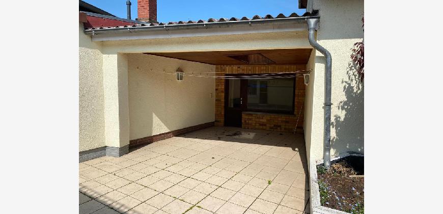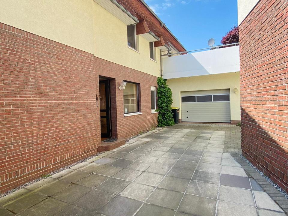 Über ein Flügeltor erreichen Sie den gepflasterten Innenhof, welcher gleichzeitig die Zufahrt zu der zugehörigen Garage ist. Auch für einen zweiten PKW ist in dem gepflasterten Innenhof ausreichend Platz vorhanden.