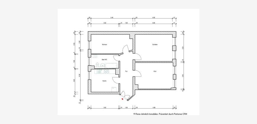 Helle 3-Raum-Wohnung mit Gartenmitnutzung.