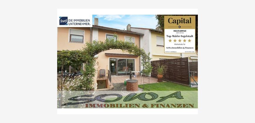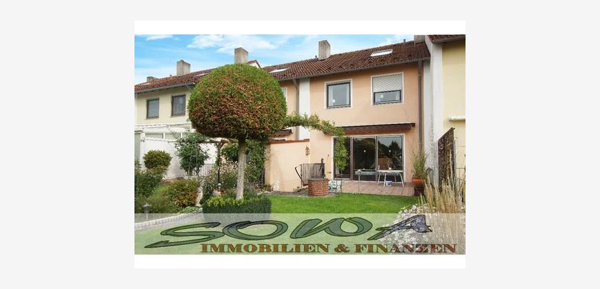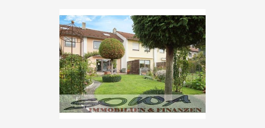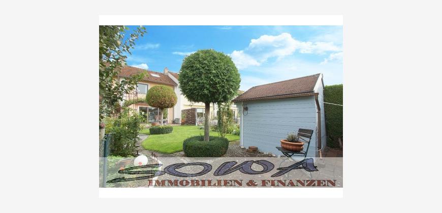 AusstattungIn einer ruhigen Wohnanlage wird ein gepflegtes Reihenmittelhaus mit dazugehöriger Garage zum Verkauf angeboten, welches ca. 1980 auf einem Grundstück von ca. 215 m² erbaut wurde. Auf insgesamt 133,61 m² Wohnfläche und zwei Vollgeschossen erwarten Sie 5 Zimmer, ein Badezimmer, ein Gäste-WC, eine Küche mit Einbauküche und einen Sonnengarten mit Terrasse.