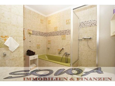 Im Obergeschoss erwarten Sie drei große Schlafräume, die Sie auch als Büro oder Kinderzimmer nutzen können. Ebenso ein helles Badezimmer mit einer Badewanne, einer Dusche, einem Waschtisch und einem WC ausgestattet.