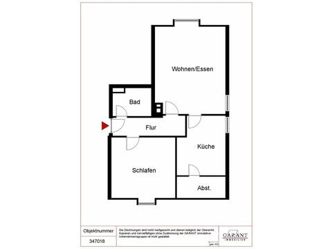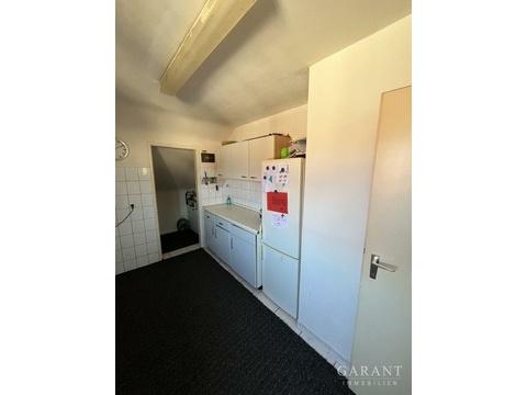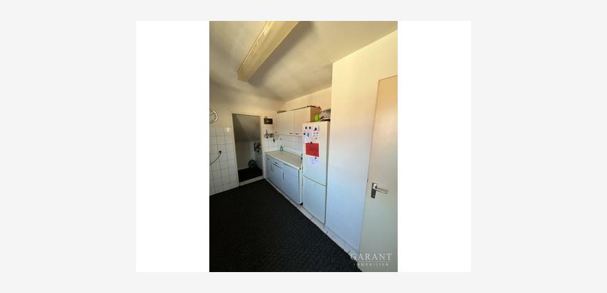 Die Wohnung bietet ein geräumiges Wohnzimmer, von dem aus man in die abgetrennte Küche gelangt. Die Küche verfügt zusätzlich über einen kleinen, separaten Abstellraum - praktisch für Vorräte oder Haushaltsgeräte.