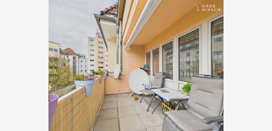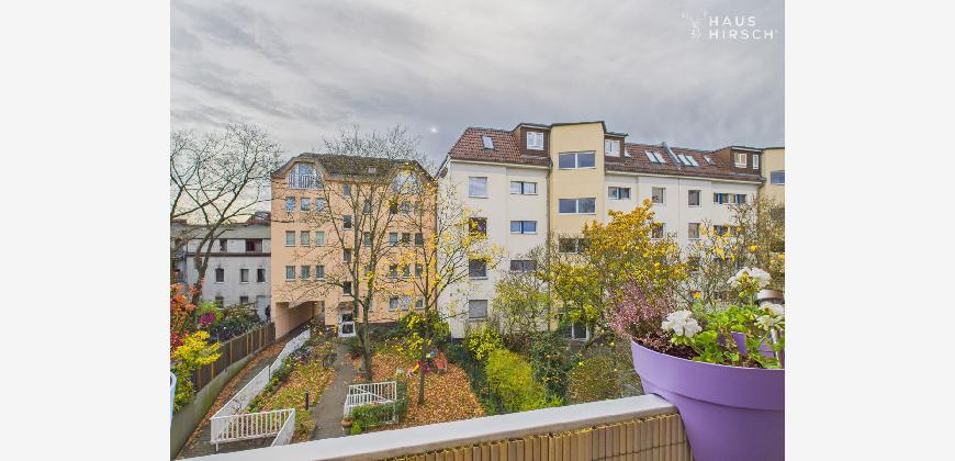 - Ausrichtung: Balkon mit Ausrichtung nach Süd-Westen in den begrünten Bereich.