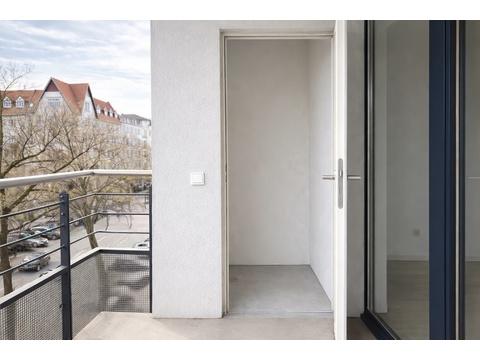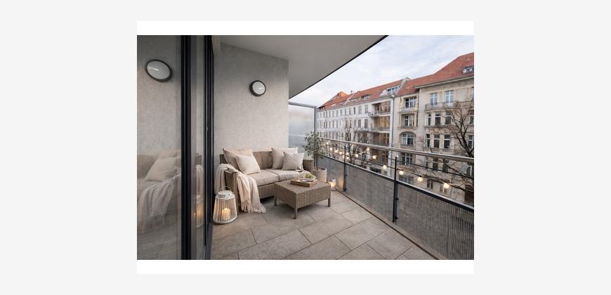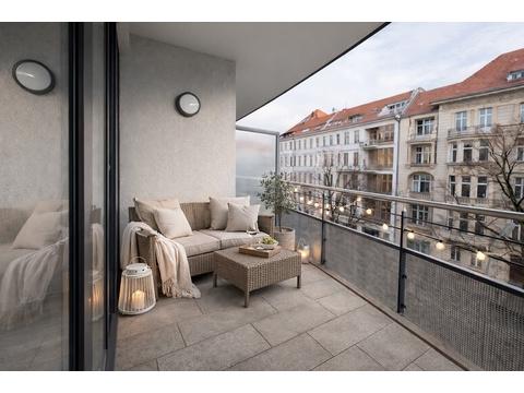 Der Balkon zur Schlüterstraße verbindet urbanes Leben mit Privatsphäre. Eine Trennwand zwischen den Balkonen sorgt für Sichtschutz und Privatsphäre – ein echtes Qualitätsmerkmal in dieser Lage.