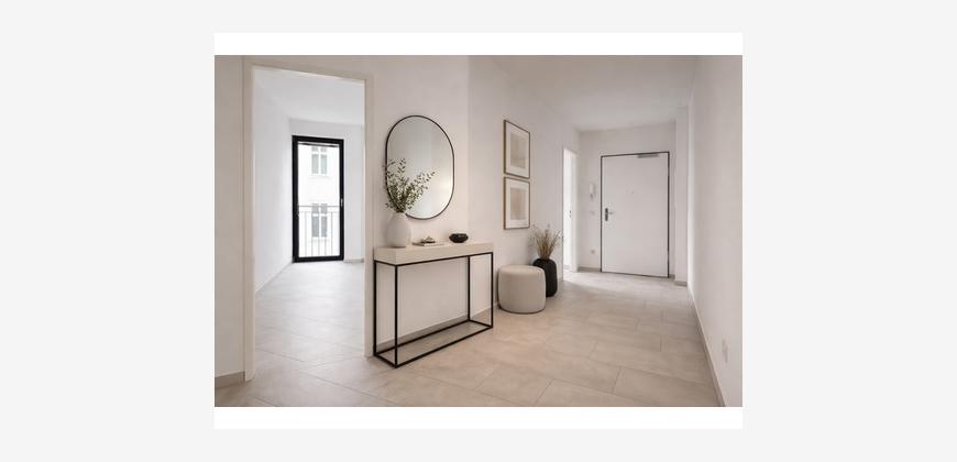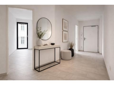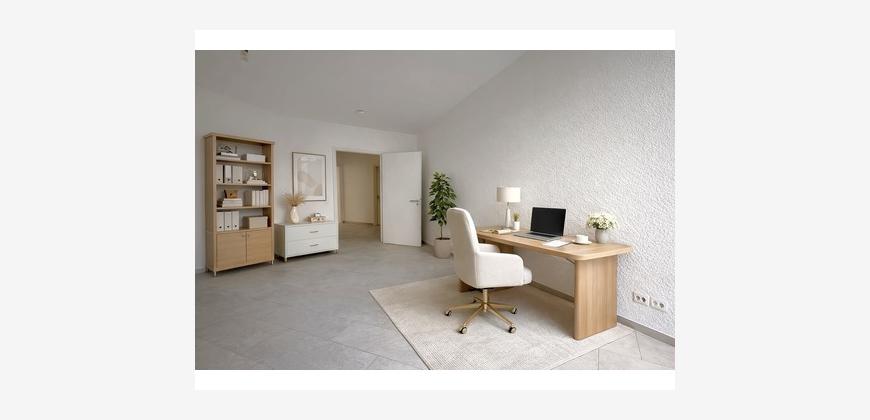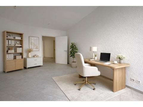 Auf ca. 95 m² Wohnfläche bietet die Wohnung einen großzügigen Grundriss mit vielseitigen Nutzungsmöglichkeiten. Der weitläufige Wohn- und Essbereich bildet das kommunikative Zentrum der Wohnung, ergänzt durch ein separates Office sowie ein ruhig gelegenes Schlafzimmer.