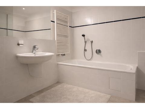 • Gefliestes Badezimmer mit Badewanne und separater Dusche
