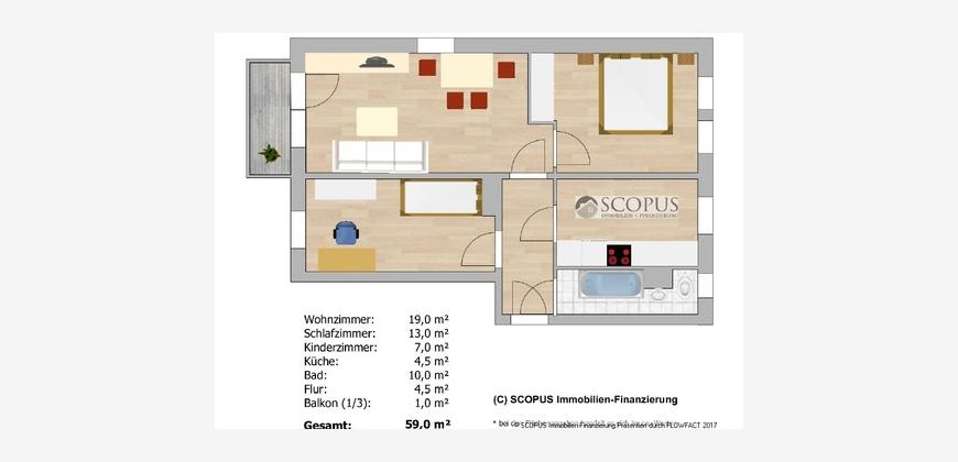 Die hübsche Wohnung mit 3 Zimmern befindet sich im Erdgeschoss eines kleinen Wohnblockes nahe dem Schlosspark. Hinter dem Haus stehen PKW-Stellplätze zur Anmietung und ein Wäschetrockenplatz zur gemeinschaftlichen Nutzung zur Verfügung.