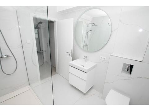 Das tageslichthelle Duschbad (TGL) ist modern gestaltet und hochwertig ausgestattet.