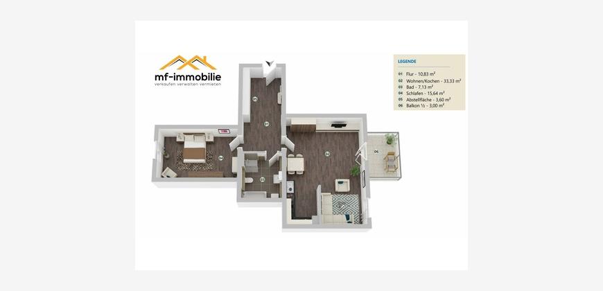 Willkommen in Ihrem neuen Zuhause! Diese attraktive Etagenwohnung befindet sich im 1. Obergeschoss eines charmanten, denkmalgeschützten Gebäudes und bietet Ihnen auf großzügigen 73,53 m² Wohnfläche eine Vielzahl an Annehmlichkeiten.