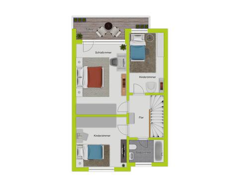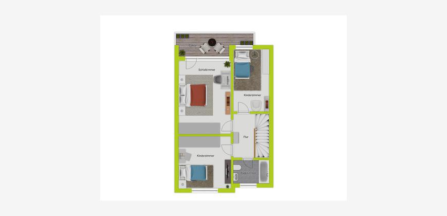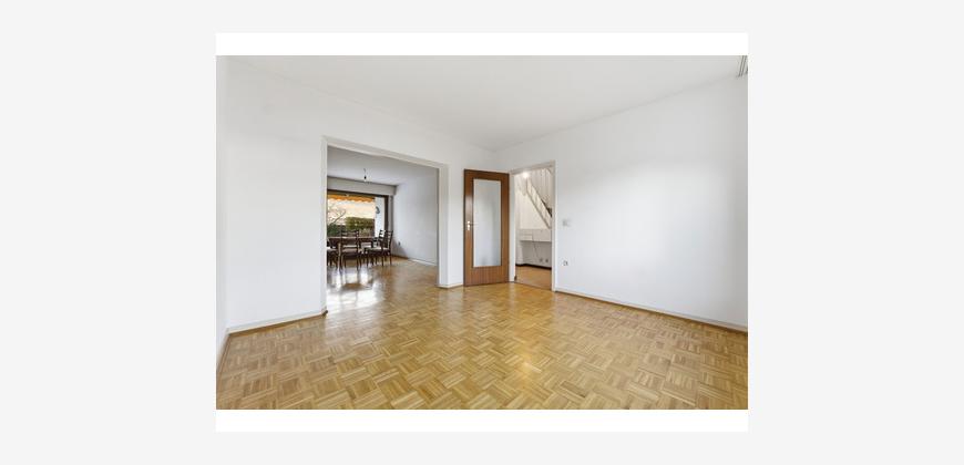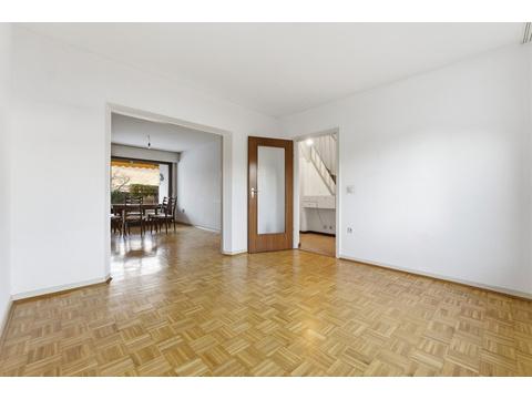 Das im Jahr 1965 errichtete Reihenmittelhaus bietet eine Wohnfläche von rund 104 m² und präsentiert sich als vielfältig nutzbares Zuhause für Familien mit Kindern. Die Grundrisse zeigen eine klare, funktionale Raumaufteilung, bei der alle Ebenen sinnvoll miteinander harmonieren. Im Erdgeschoss öffnen sich Wohn- und Essbereich großzügig zur Terrasse und weiter in den weitläufigen Garten. Dadurch entsteht ein natürlicher Übergang zwischen Innen- und Außenbereich, der den täglichen Wohnkomfort spürbar erhöht. Die Küche ist separat angeordnet und unterstützt eine klare Struktur des Familienalltags, während ein Gäste-WC den praktischen Nutzen dieser Etage vervollständigt.
