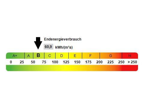 Dank der Energieeffizienzklasse B ist die Wohnung besonders sparsam im Verbrauch.