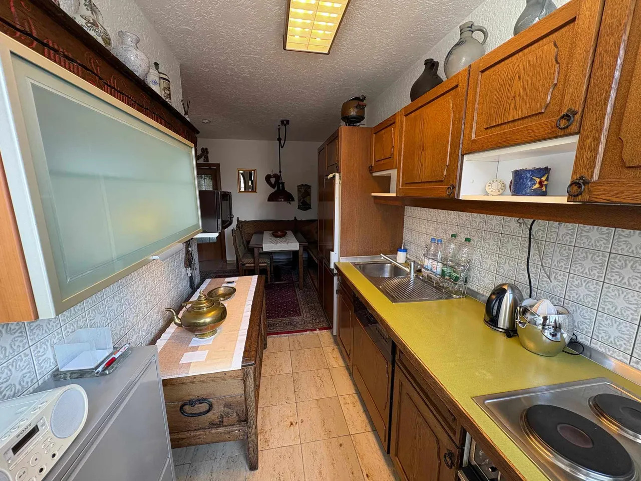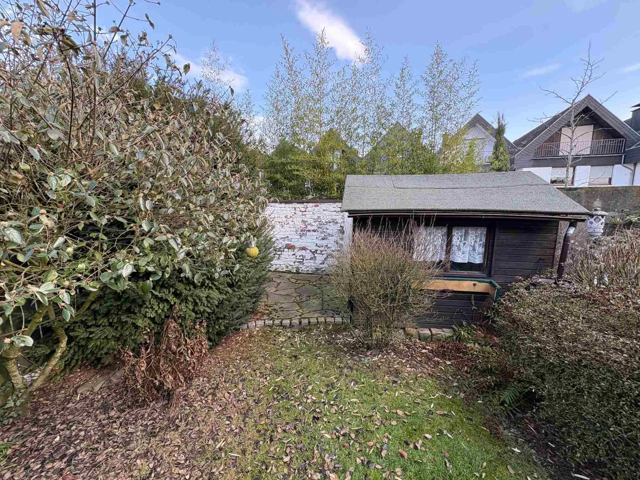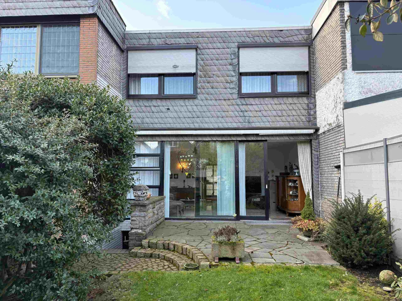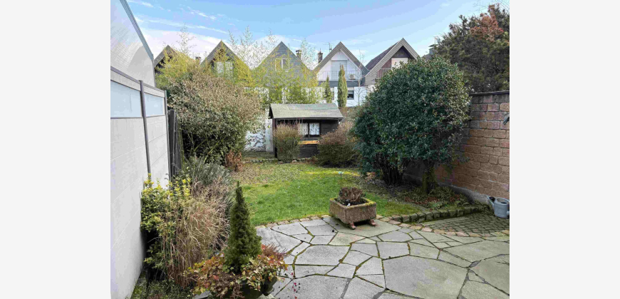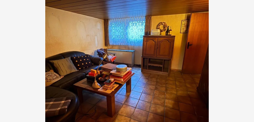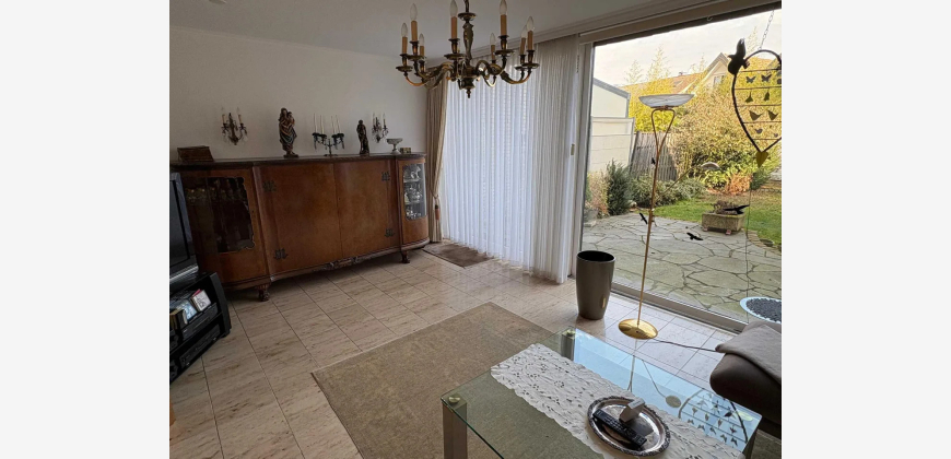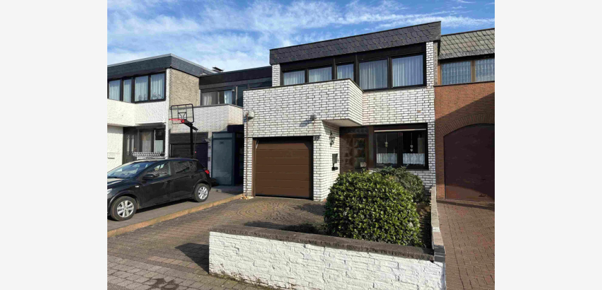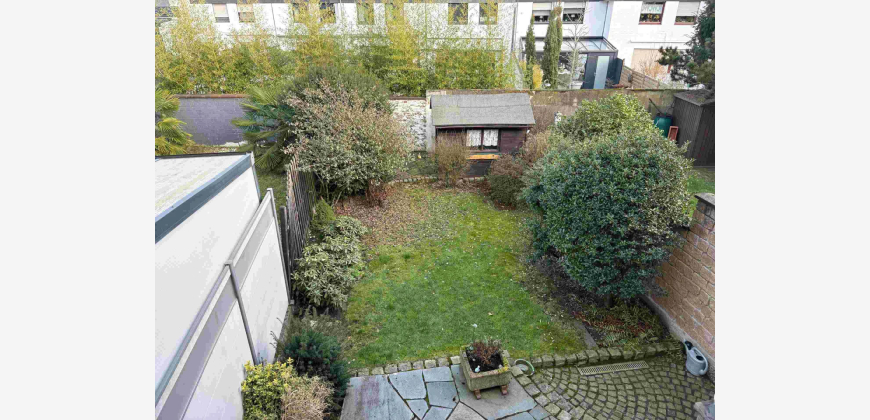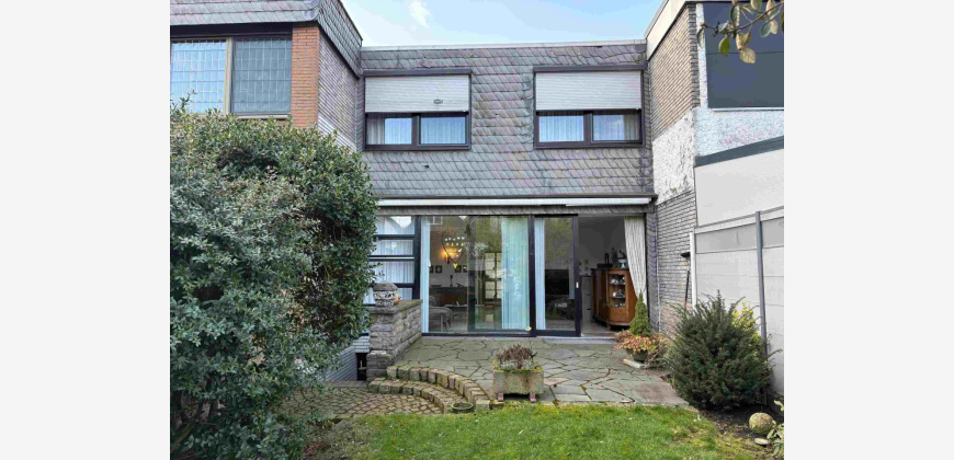 Angeboten wird ein Reihenmittelhaus aus dem Jahr 1972 mit ca. 106 m² Wohnfläche. Über die Eingangsdiele gelangt man in das Treppenhaus, das offen im Esszimmer mündet. Von hier aus betritt man das Gäste-WC und die offene Küche. Im Erdgeschoss befindet sich auch das separate Wohnzimmer, das allerdings durch das Entfernen einer Wand in einen geräumigen Wohn-/Essbereich umgebaut werden kann. Über das Treppenhaus gelangt man in das Obergeschoss des zweigeschossigen Hauses, von dem aus ein zentraler Flur Zugang in ein großes Schlafzimmer mit Balkon gewährt. Außerdem befinden sich zwei weitere Schlafräume (Kinderzimmer) sowie ein geräumiges Badezimmer im Obergeschoss. Das Objekt ist nur teilunterkellert, hier befinden sich ein Abstellraum, ein größerer Kellerraum, der bis zuletzt als Hobbyraum genutzt wurde, und ein Werkraum mit integrierter Dusche und Vorrichtung für die Waschmaschine. Abgerundet wird das Angebot durch einen gemütlichen Garten, welcher über die Kelleraußentreppe ebenfalls begehbar ist. Eine Markise ist bereits an der Hausrückseite über der Terrasse installiert. Das Grundstück ist ca. 193 m² groß. Zu guter Letzt befindet sich eine Garage neben dem Hauseingang und ist in dem Haus integriert.