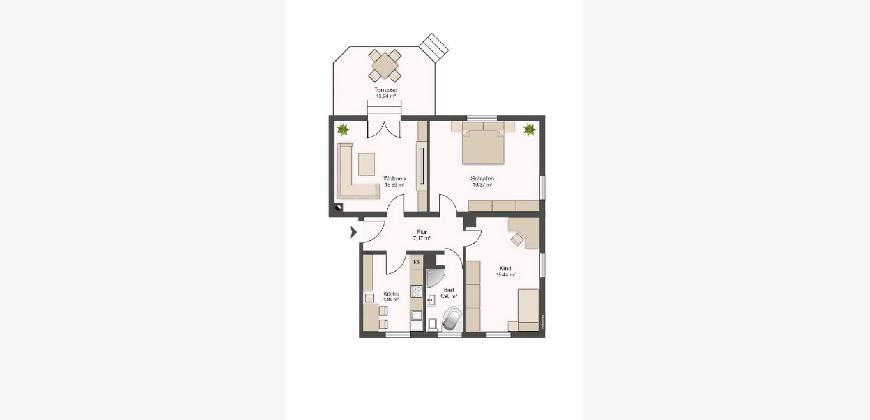 Zum Verkauf steht eine vermietete 3-Raum-Eigentumswohnung mit einer Wohnfläche von ca. 79 m², Terrasse und Gartenanteil. Die Wohnung befindet sich im Erdgeschoss eines gepflegten Mehrfamilienhauses aus dem Jahr 1937 mit insgesamt 6 Wohneinheiten. Im Jahr 1999 wurde das Gebäude komplett saniert.