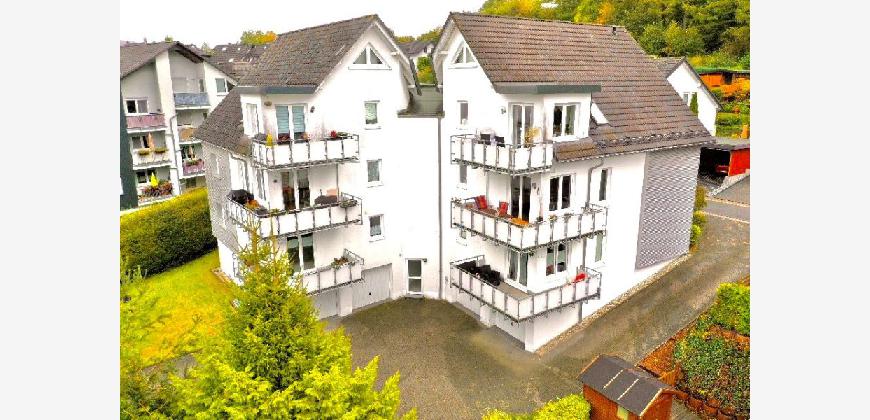 Auf dem Eschen thront oben auf dem Berg die Wohnung in einem gepflegten Mehrfamilienhaus am Ende einer Sackgasse in ruhiger Lage.