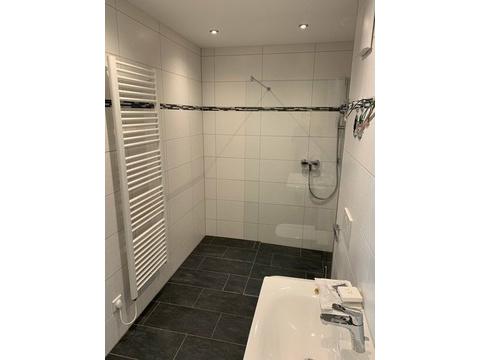 Die Wohnung ist mit hochwertigen Vinylboden/Bad gefliest
