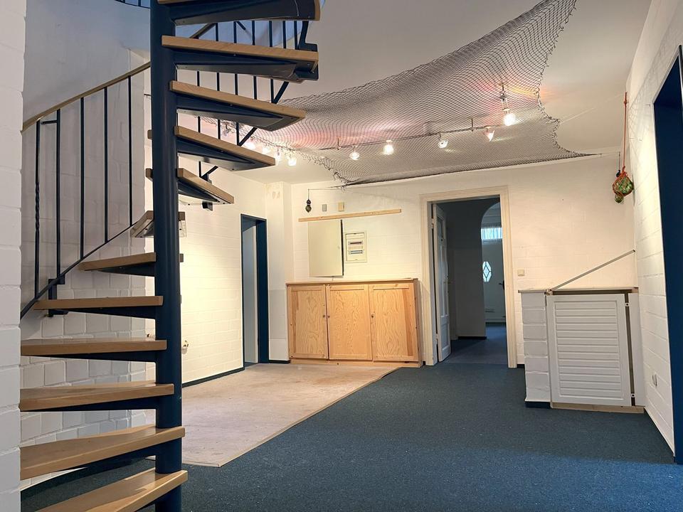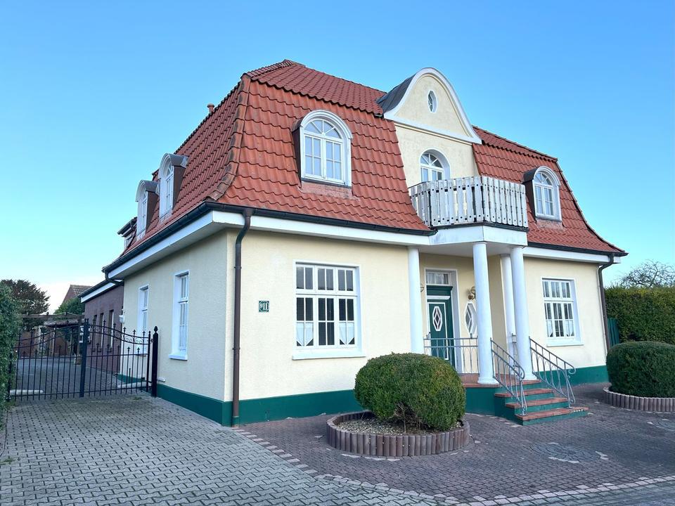 Ein separater Eingang ist diesbezüglich vorhanden. Diese Villa verfügt über einen ganz besonderen Charm, der sich direkt beim Heranfahren in der Straße zeigt. die vielen Räumlichkeiten zeigen einige Nutzungsmöglichkeiten und Potential auf.