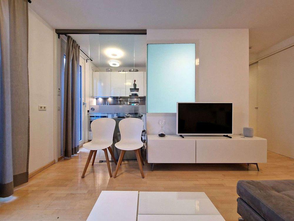 Das ca. 36 m² große Apartment begeistert auf den ersten Blick mit einer stylishen und zugleich ungemein wohnlichen Atmosphäre. Die moderne Ausstattung beinhaltet Parkettboden, Fußbodenheizung, bodentiefe Fenster bzw. Fenstertüren, elektrische Rollläden etc. Und durch die bodentiefen Fensterflächen bzw. Fenstertüren wirkt das Apartment angenehm hell.