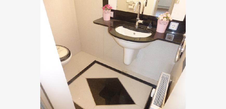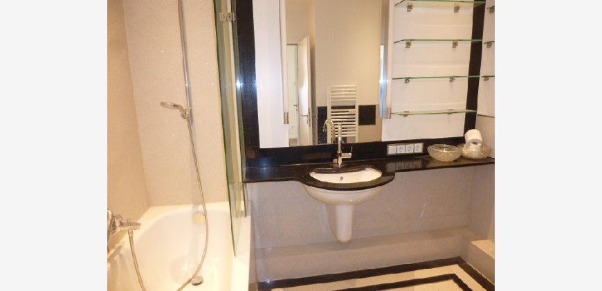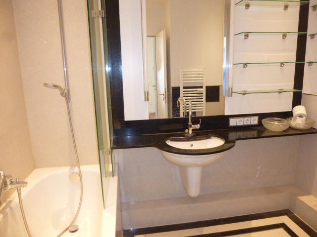 Das Wannenbad und das Gäste-WC sind sehr hochwertig in Granit (schwarz und