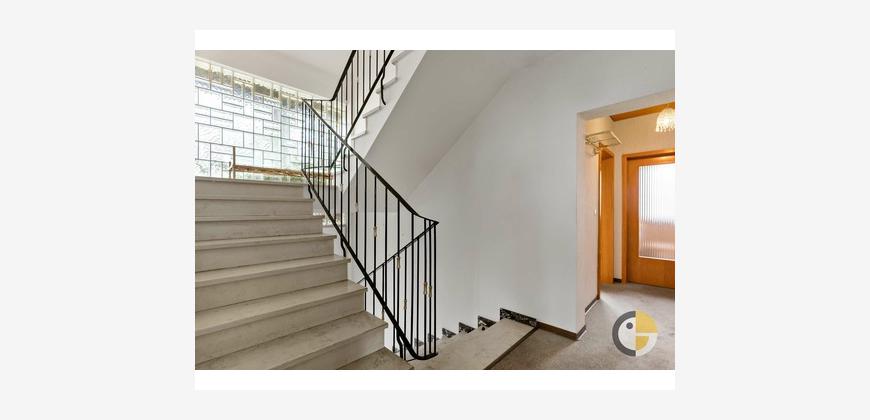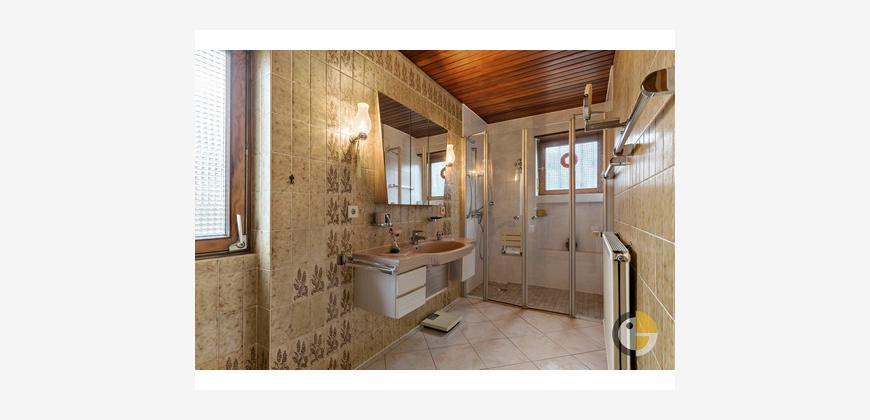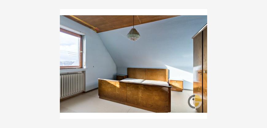 Das Haus verfügt über 6 Zimmer, 2 geräumige Schlafzimmer und 2 Bäder. Die Inneneinrichtung ist teilweise renoviert und bietet eine einfache, aber funktionale Ausstattung. Die Böden sind mit einer Mischung aus Fliesen, Laminat und Teppichboden versehen, was für eine angenehme Wohnatmosphäre sorgt.