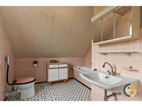 Obergeschoss mit Badewanne, Waschbecken und WC