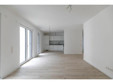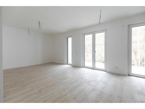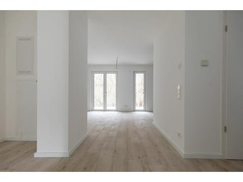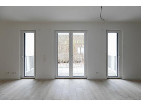 Eine hochwertige Ausstattung der Wohnung mit einer Miele-Einbauküche, Pellet-Heizung, Fußbodenheizung, Fliesenböden und der lichtdurchfluteten Architektur sorgt für ein entspanntes Wohnen.