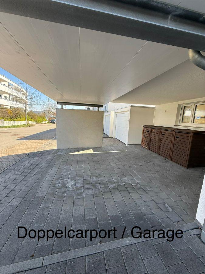 - Doppelcarport (bietet Platz für 1-2 Autos sowie zusätzlich Fahrräder & Mülltonnen)
