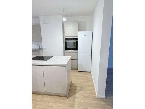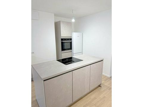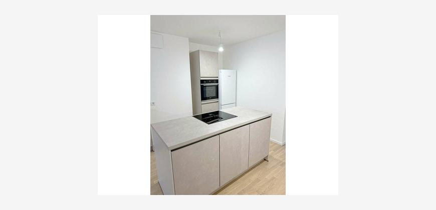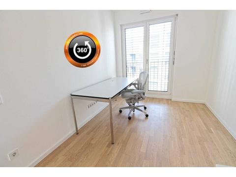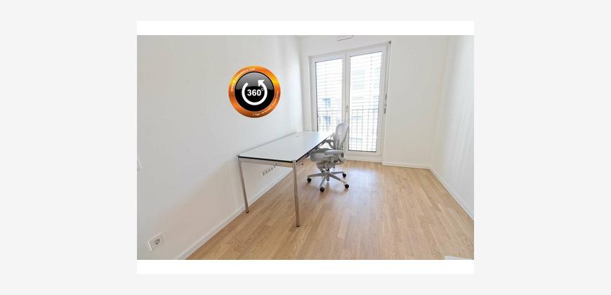 Die Küche fügt sich harmonisch und zentral in der Wohnung mit ein. Von hier geht dann auch direkt der Home-Office-Bereich ab. So sind die Wege zum Kühlschrank kurz! Für angenehmes Arbeiten steht bereits ein Tisch von USM-Haller sowie bequemer Bürostuhl zur Verfügung.
