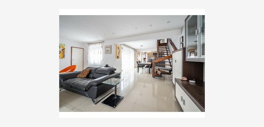 Wohnung 1 empfängt Sie im Erdgeschoss mit einer Diele, die in den großzügigen Wohn- und Küchenbereich führt. Ein Abstellraum sowie ein Gäste-WC ergänzen die Etage. Im Obergeschoss erwarten Sie zwei Schlafzimmer, ein Büro und ein Badezimmer. Zusätzlich verfügt diese Einheit über einen geräumigen Keller mit Hobbyraum und weiteren Abstellmöglichkeiten – ideal für Familien, die viel Platz benötigen.