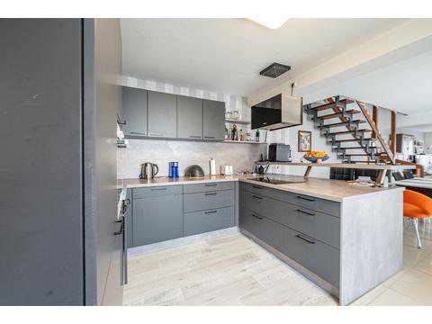 Wohnung 2 betreten Sie über eine kompakte Diele im Erdgeschoss. Im Obergeschoss öffnet sich ein heller Wohn-Küchenbereich, ergänzt durch ein Badezimmer und ein gut geschnittenes Schlafzimmer. Eine funktionale, charmante Einheit – perfekt für Singles oder Paare.