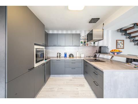 Wohnung 4 beginnt im Erdgeschoss mit einer Diele, einem Abstellraum und einem Gäste-WC. Im Obergeschoss finden Sie einen offenen Küchen-/Wohnbereich, ein Schlafzimmer und ein Badezimmer. Diese klar strukturierte Einheit eignet sich hervorragend für Paare oder Singlehaushalte.