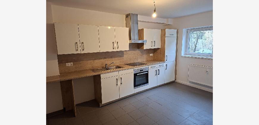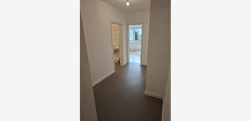 Die Wohnung wurde im Januar 2026 frisch rennoviert. Sie hat eine große Küche mit zusätzlichem Abstellraum. Ein modern ausgestattetes Vollbad mit Duschmöglichkeit, und ein Gäste-WC machen die Wohnung zu einem funktionalen wie attraktiven Domizil. Zusätzlich bietet die Wohnung zwei kleine Gartenbereiche Richtung Süden und Norden. Die Räume Flur, Küche, Nebenraum, Bad und Gäste-WC sind gefliest, hingegen Schlafzimmer und Wohnzimmer sind mit Laminatböden ausgelegt. Zusätzlich befindet sich im Dachboden des Hauses ein weiterer Abstellraum. Ein zusätzlichen KFZ-Stellplatz befindet sich direkt vor dem Haus und muss mit angemietet werden.