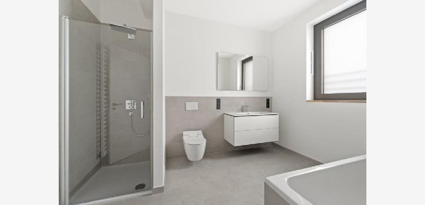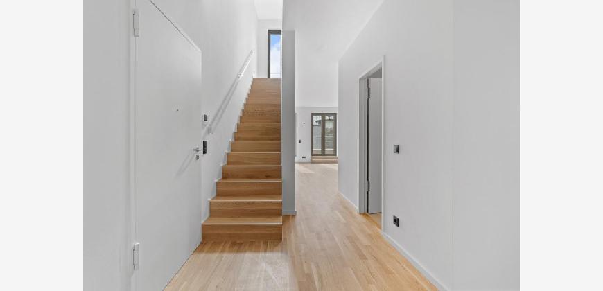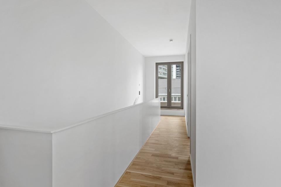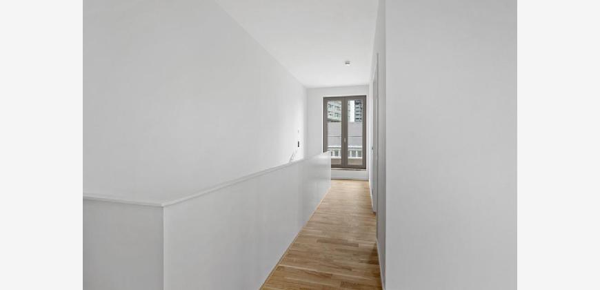 Auf der 2. Etage, sprich im 7. Obergeschoss, befindet sich das großzügige Schlafzimmer. Vom Flur und vom Schlafzimmer aus erreichen Sie den zweiten Balkon mit ca. 6 m2. Der Flur auf der 2. Etage bietet genug Raum für eine gemütliche Home-Office Ecke. Auf der 2. Etage befindet sich ein weiteres Tageslichtbad mit Dusche und Badewanne.