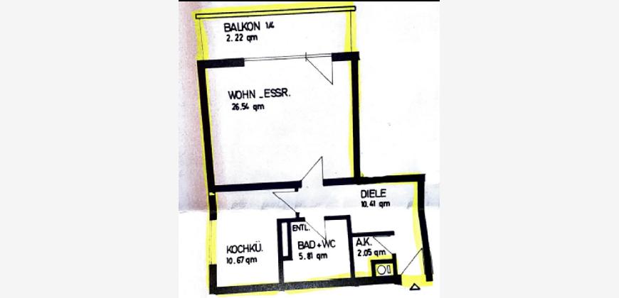 Gepflegte 1-Zimmer-Wohnung mit Balkon und Einbauküche in Walldürn