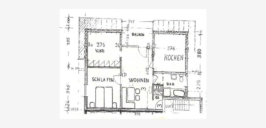 AusstattungEinbauküche, Zentralheizung in Verbindung mit Heizkörpern, doppelt verglaste Kunststofffenster, Dachflächenfenster wurden erneuert, Böden: Fliesen und Teppich, das Hauptdach (oberhalb der Wohnung) ist mit 20 cm Dämmwolle gedämmt.