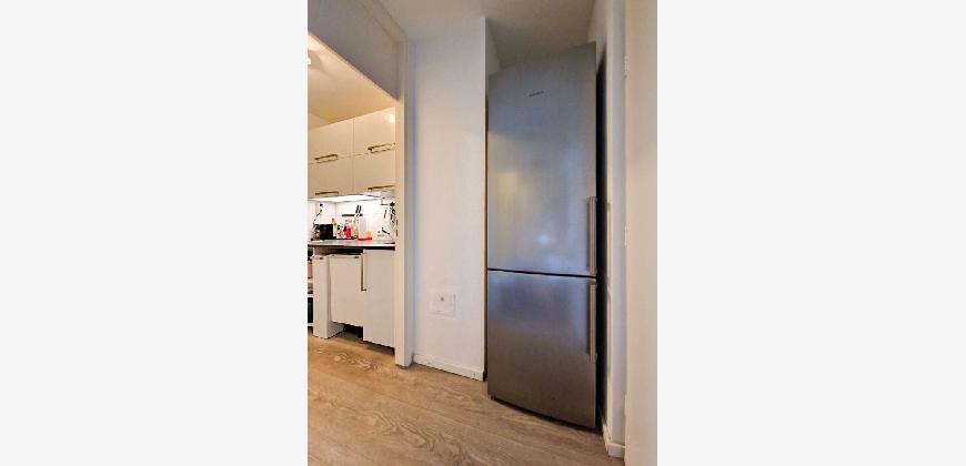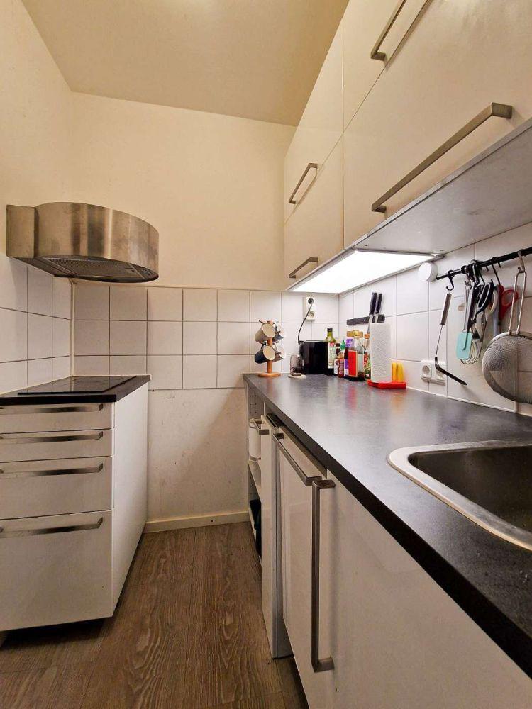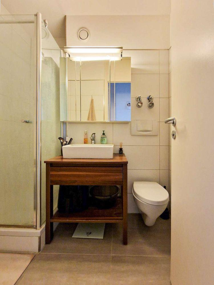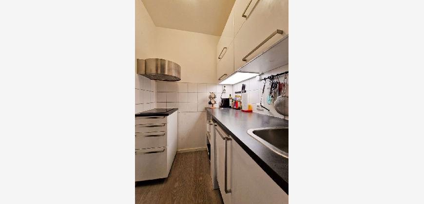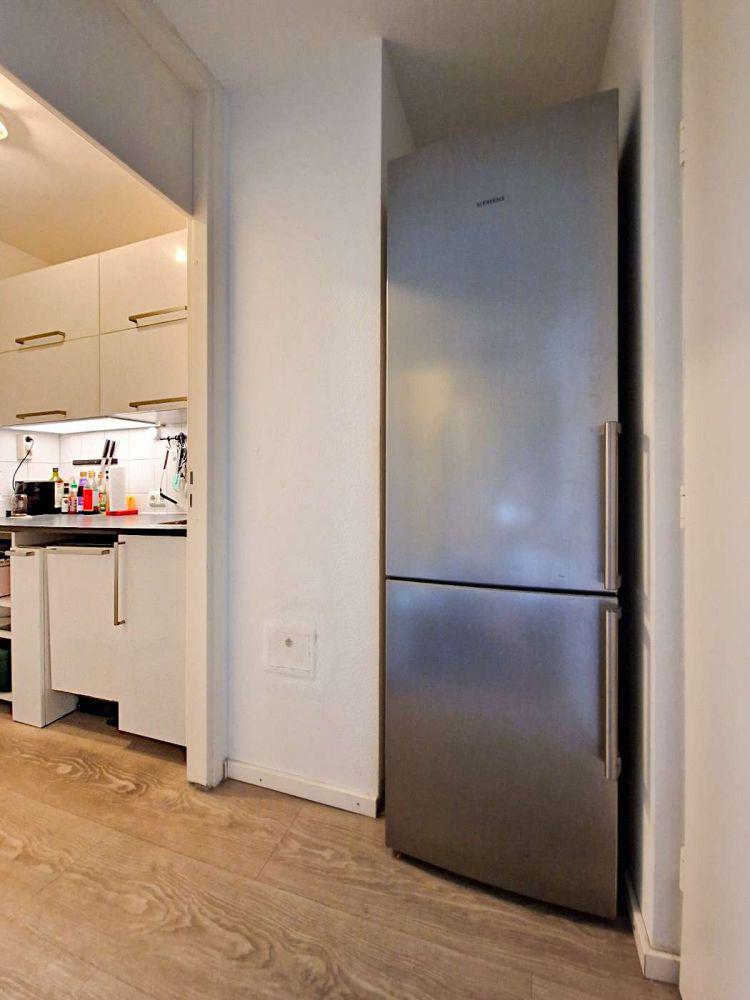 Praktisch: Die kleine Küche ist voll ausgestattet, abgestimmt auf einen Single-Haushalt, mit 2er-Kochfeld, Dunstabzug und Geschirrspülmaschine. Die ergänzende Kühl-Gefrierkombination findet in einer Nische in der Diele ihren optimalen Platz. An dieser Stelle wollen wir nicht unerwähnt lassen, dass neben der Einbauküche auch weiteres Mobiliar übernommen werden kann.
