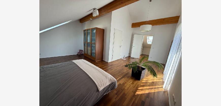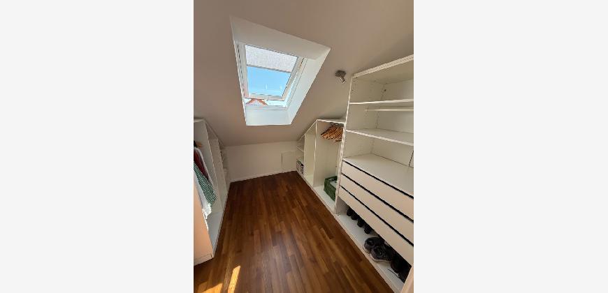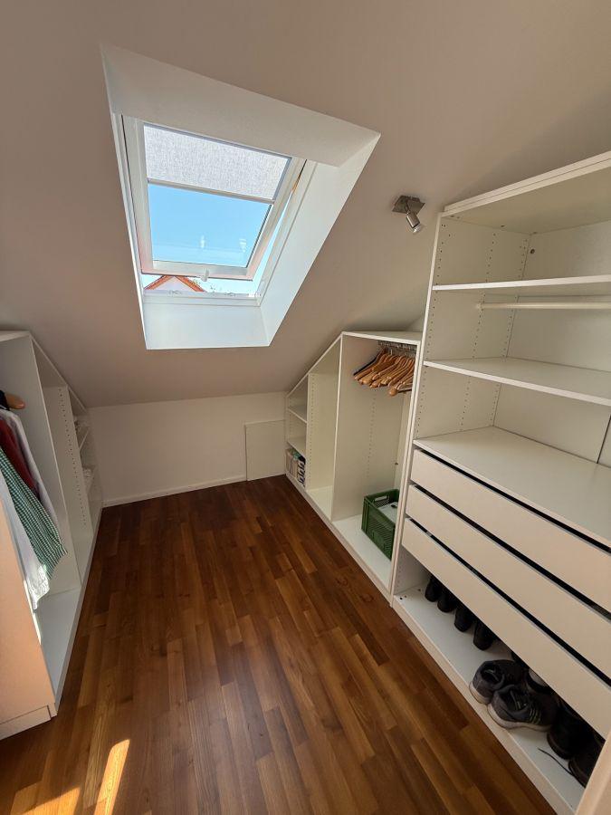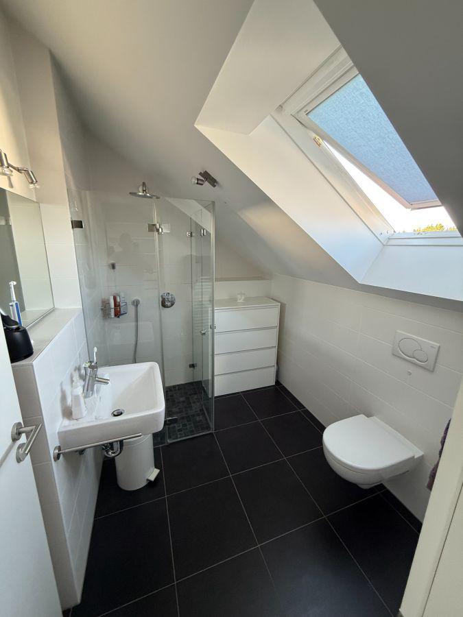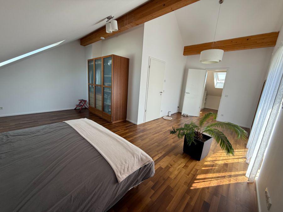 Im Obergeschoss befinden sich drei gut geschnittene Schlafzimmer sowie ein Badezimmer mit Badewanne und Dusche. Das voll ausgebaute Dachgeschoss bietet zusätzlichen Raum für ein weiteres Schlafzimmer, ein Homeoffice oder ein Studio. Das Haus ist vollständig unterkellert und verfügt über ausreichend Stauraum, einen Hauswirtschaftsraum sowie einen vielseitig nutzbaren Hobbyraum (derzeit Kino, voll ausgestattet mit 4K Beamer und Teufel Soundanlage).
