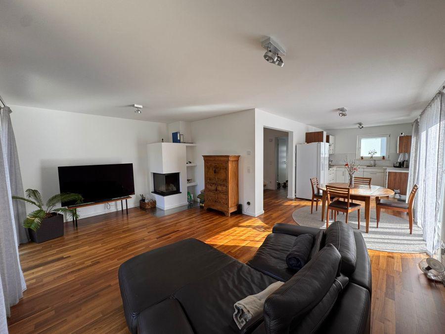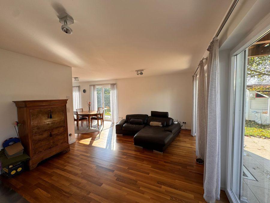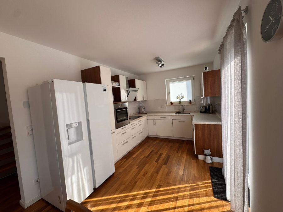 Die Immobilie vereint zeitgemäßes Wohnen, Familienfreundlichkeit und eine erstklassige Lage. Das großzügige, offen gestaltete Wohn- und Esszimmer mit direktem Zugang zur sonnigen Terrasse und dem gepflegten Garten bildet das zentrale Element des Hauses. Große Fenster sorgen für viel Tageslicht und eine freundliche Atmosphäre. Die moderne Einbauküche ist stilvoll integriert und lässt keine Wünsche offen.