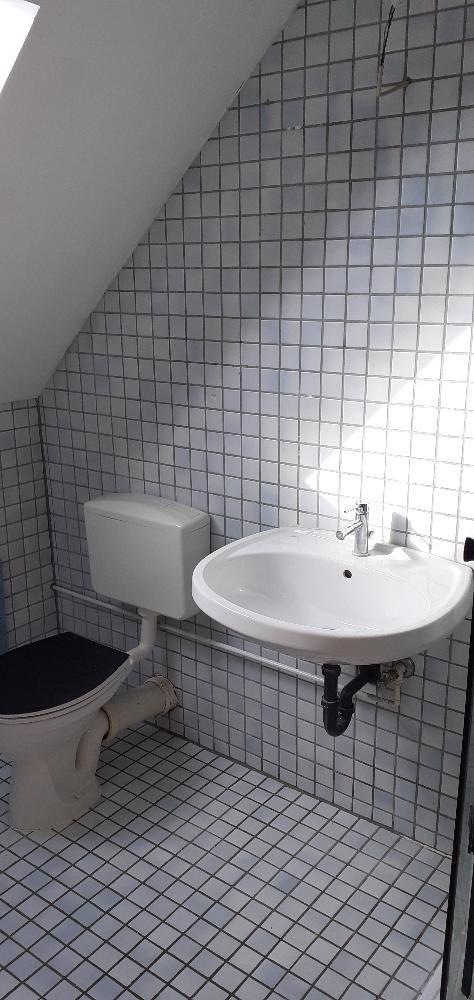 Das Tageslichtbad ist mit Dusche, Waschbecken und WC ausgestattet.