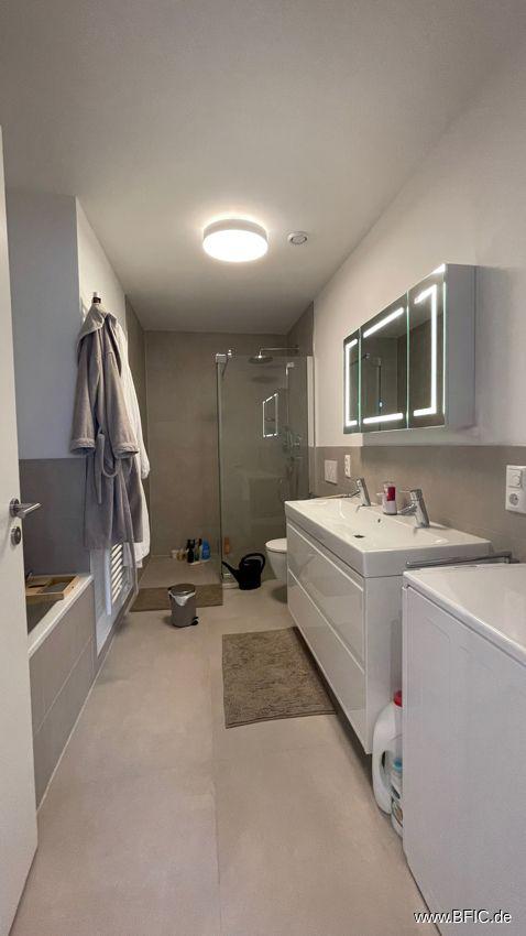 Die Ausstattung ist hochwertig: Fußbodenheizung, Echtholzparkett, elektrische Rollläden, LED-Einbauspots (keine weiteren Leuchten vorhanden), Glasfaseranschluss und Netzwerkdosen in allen Wohnräumen sowie eine Videogegensprechanlage sorgen für modernen Wohnkomfort. Zur Wohnung gehört ein Tiefgaragenstellplatz mit vorbereiteter Wallbox-Anschlussmöglichkeit. Ein eigener Kellerraum ist nicht vorhanden, aber das Souterrain bietet viel Platz, insbesondere im Vorraum zum Keller/Treppenhaus. Fahrräder können sicher im Fahrradraum in der Tiefgarage abgestellt werden.
