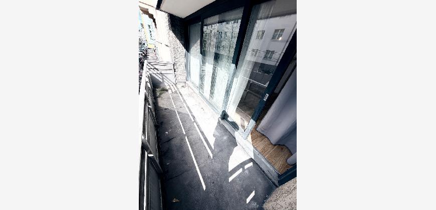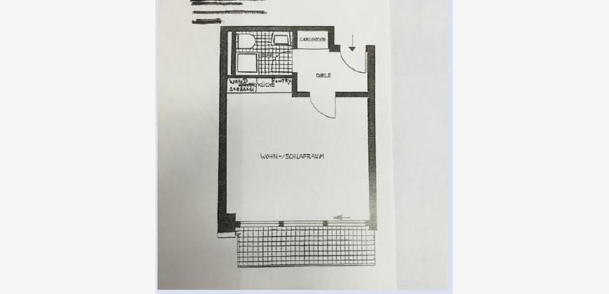 Die Wohnung verfügt über einen klassischen, effizienten Schnitt mit Wohn-/Schlafraum, Bad, Diele und Balkon (siehe Grundriss).