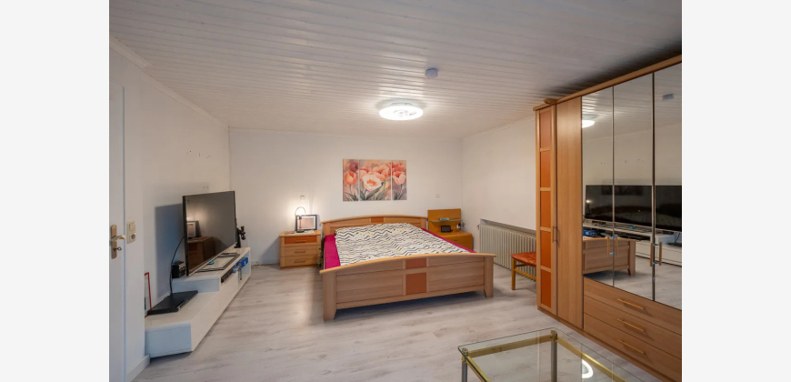 Ein besonderes Highlight der Immobilie ist das großzügige Dachgeschoss, das sich über die gesamte Wohnfläche des Obergeschosses erstreckt. Dank bereits vorhandener Heiz- und Wasseranschlüsse bietet es hervorragende Voraussetzungen für einen Ausbau nach individuellen Vorstellungen – sei es zusätzlicher Wohnraum, ein Arbeits- oder Hobbybereich.